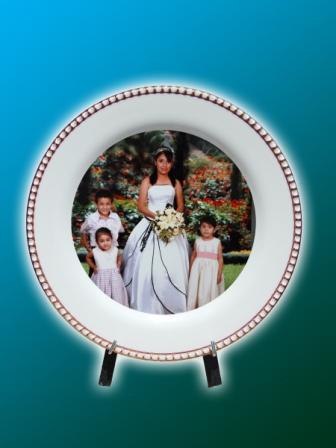 · Plato de cerámica blanco con borde dorado de 20 cm. De diámetro